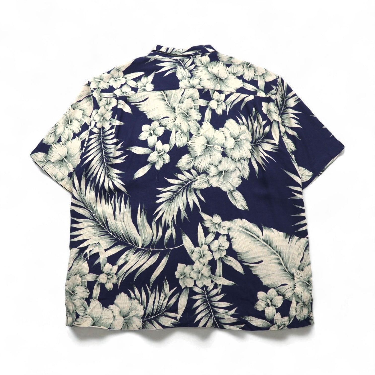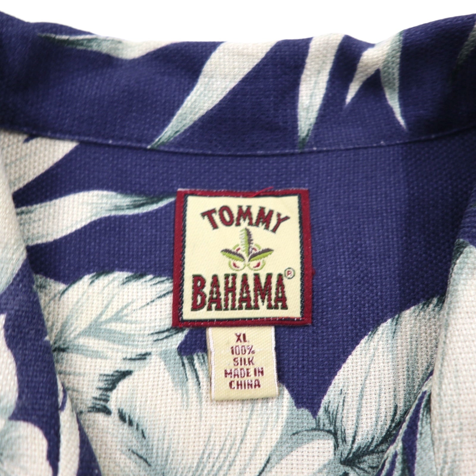 TOMMY BAHAMA シルク オープンカラー 開襟 アロハシャツ XL ネイビー ハイビスカス