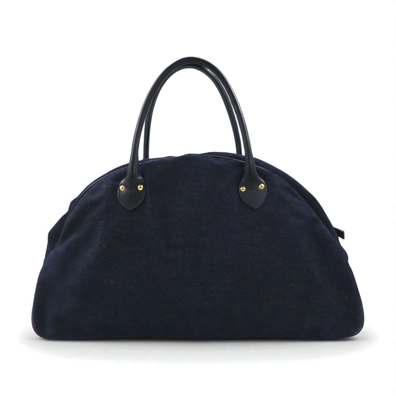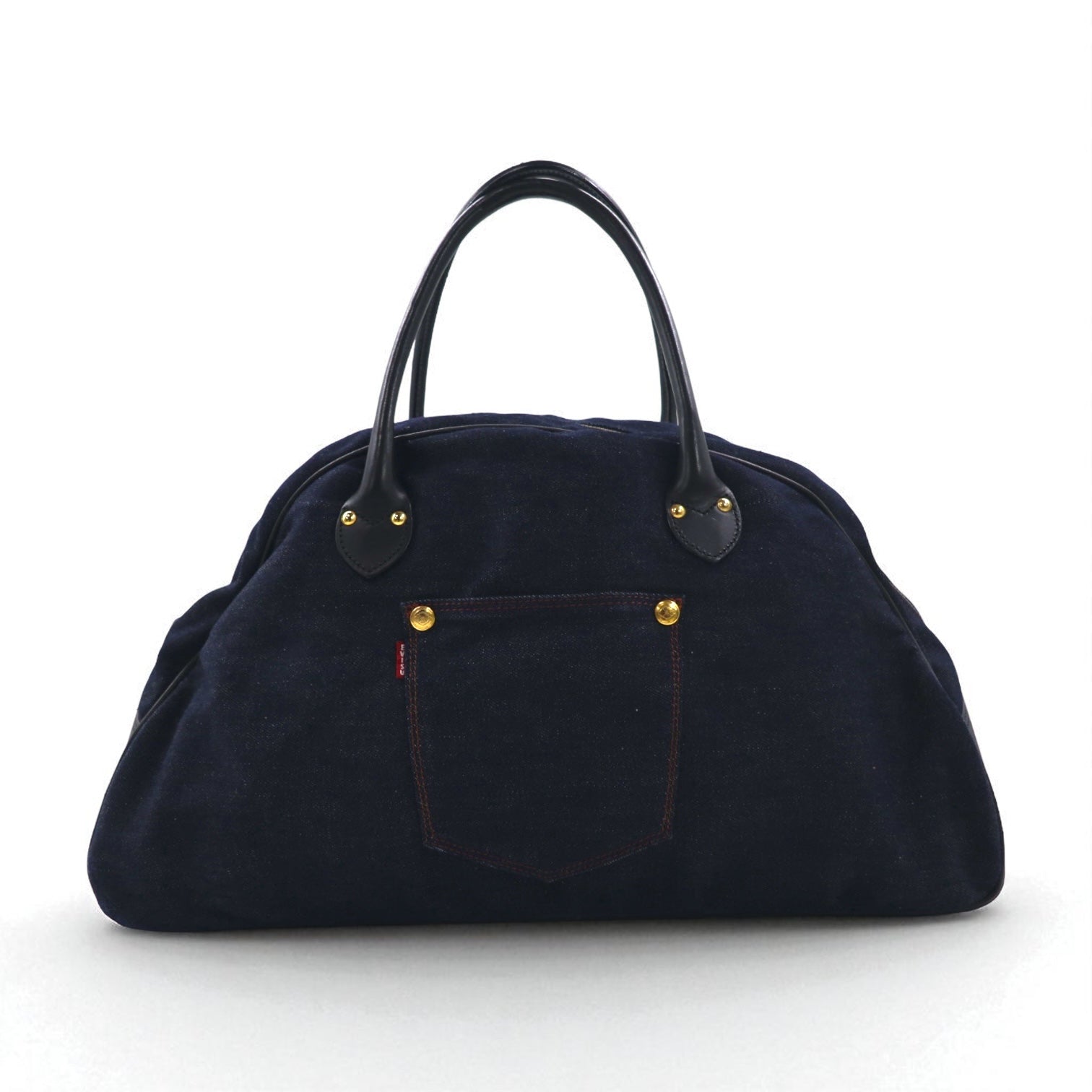 EVISU レザーハンドル デニム ボストンバッグ ハンドバッグ インディゴ ブルー 濃紺 ポケット