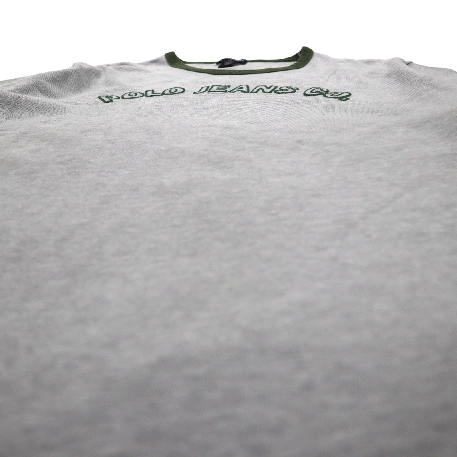 POLO JEANS Co. RALPH LAUREN 90年代 アーチロゴ リンガーTシャツ XL グレー 刺繍 チェーンステッチ コットン