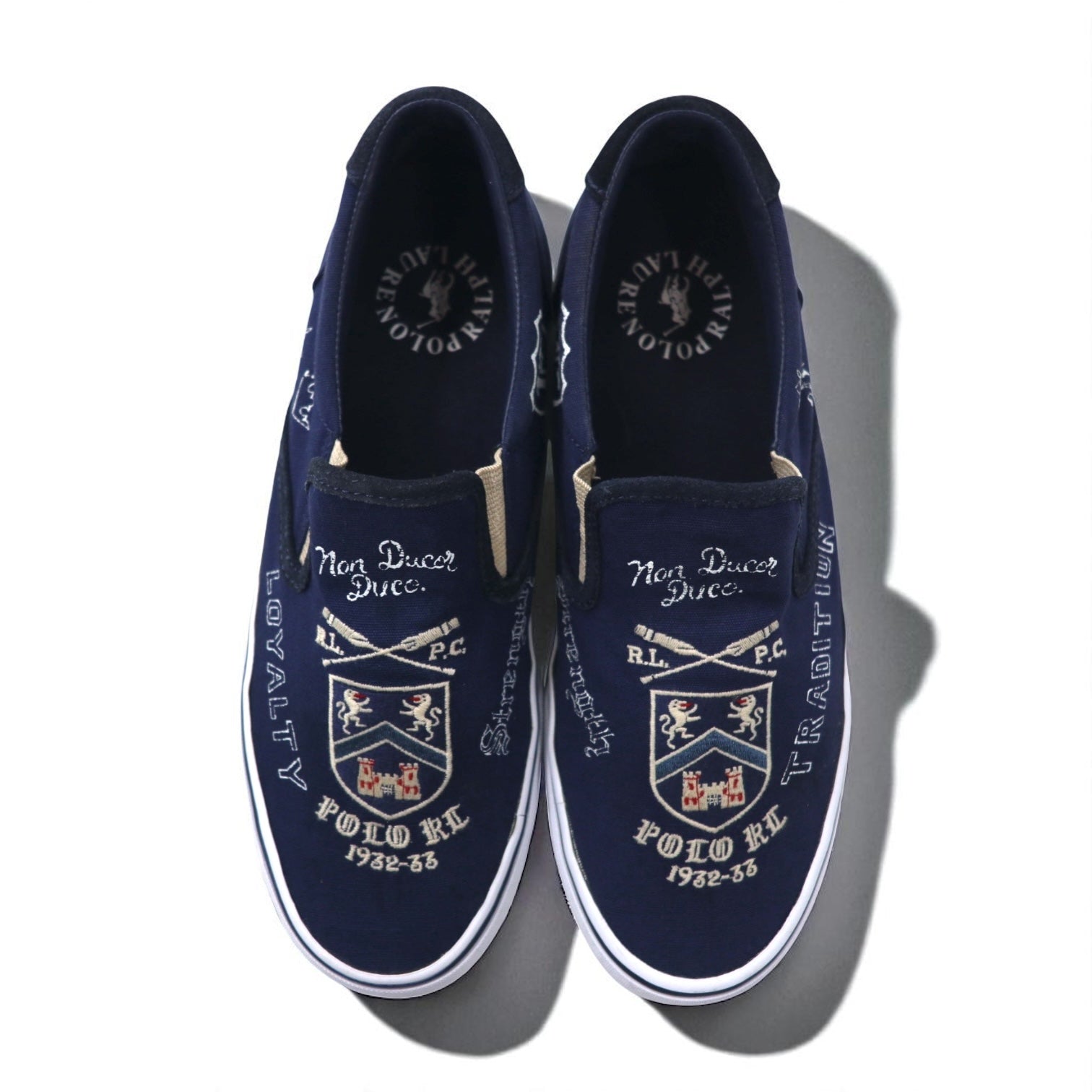 POLO RALPH LAUREN スリッポン スニーカー THOMPSON III-NE 27cm ネイビー キャンバス 刺繡 エンブレム