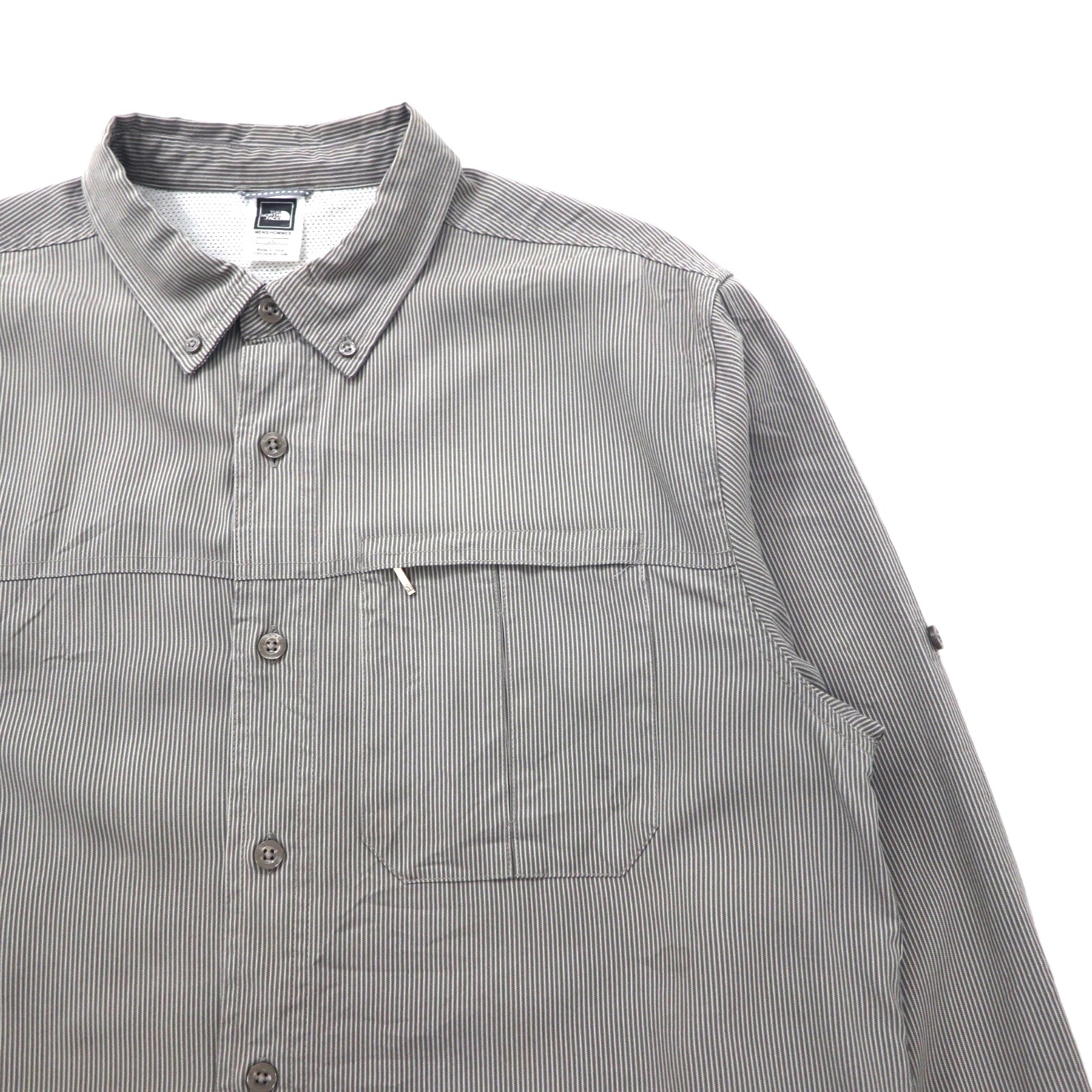 THE NORTH FACE アウトドア メッシュライナー ポリエステルシャツ L グレー モダール 胸ポケット AEVV