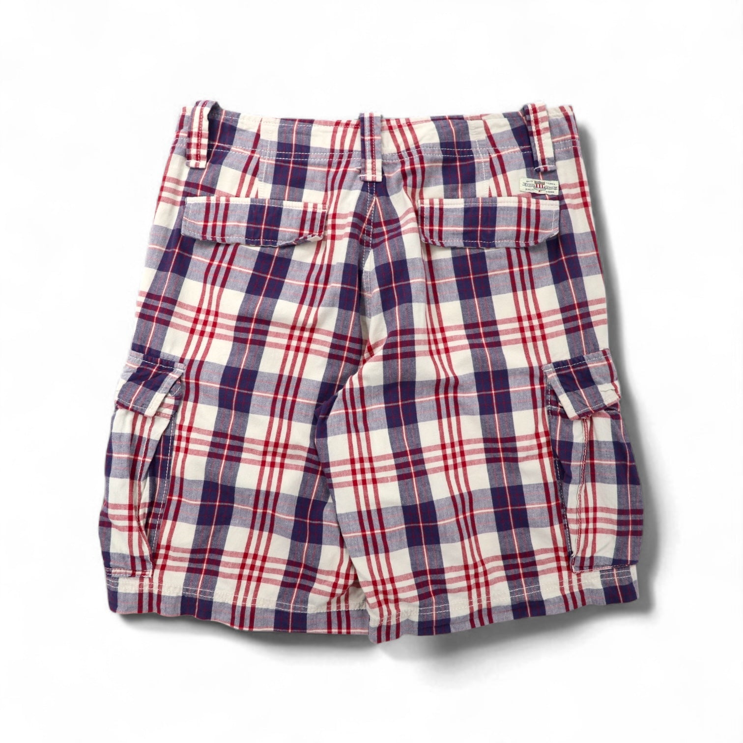 POLO JEANS COMPANY. RALPH LAUREN 90年代 ショート カーゴパンツ ハーフパンツ L レッド ホワイト ネイビー チェック コットン