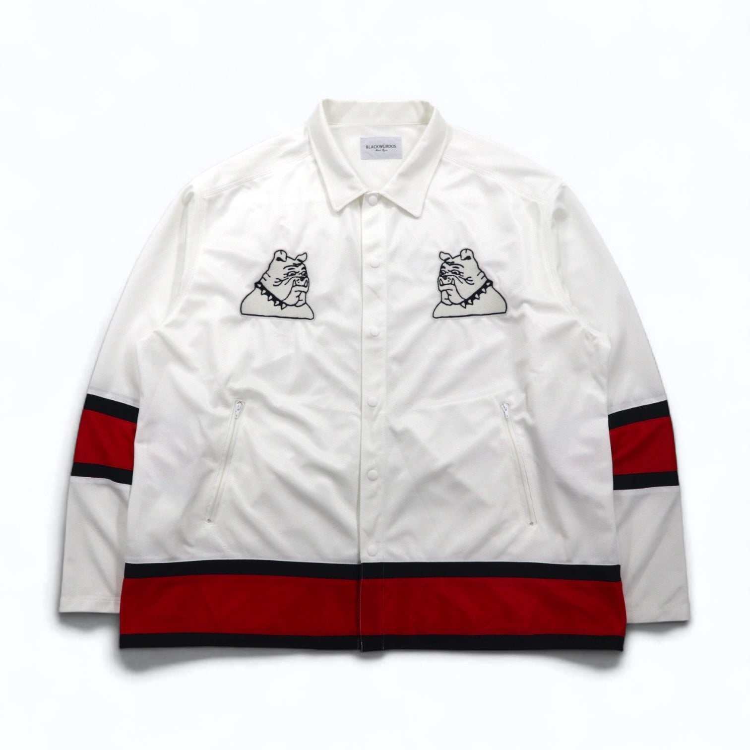 BLACKWEIRDOS ポリエステルシャツ ジャケット ジャージ FREE ホワイト ワッペン スナップボタン