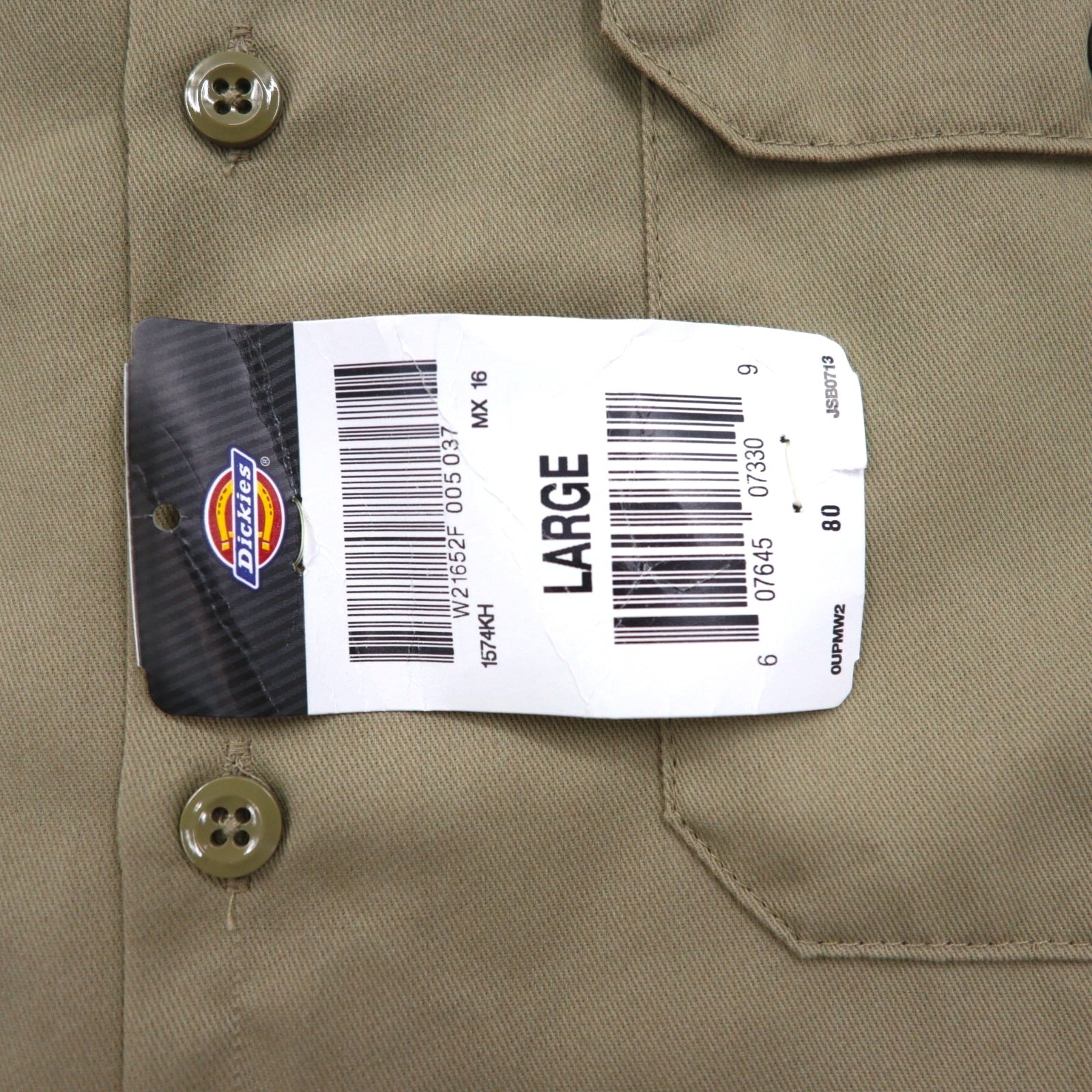 Dickies 半袖 ワークシャツ L ベージュ US企業 ワンポイント刺繍 ダブルポケット BHTS 1574KH 未使用品