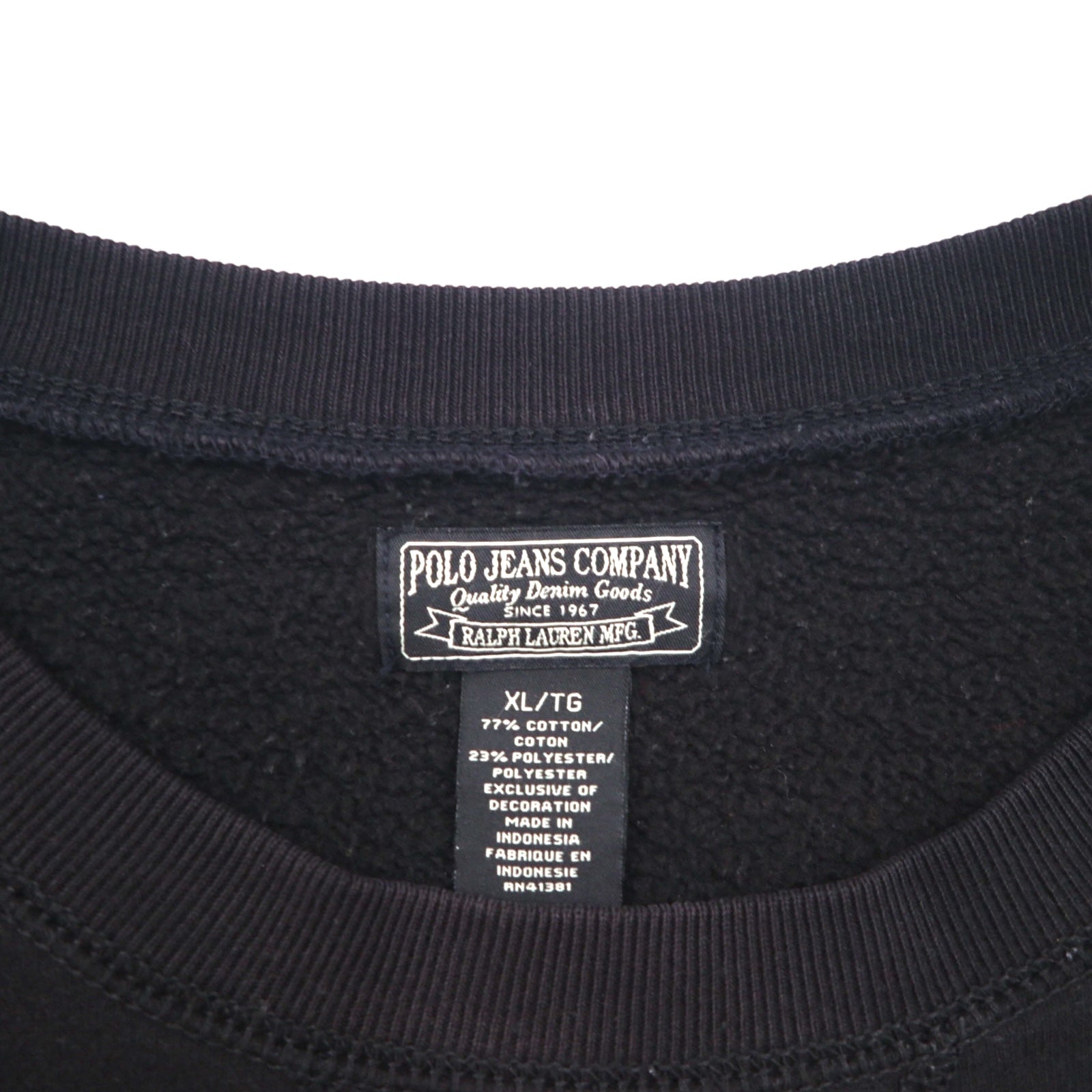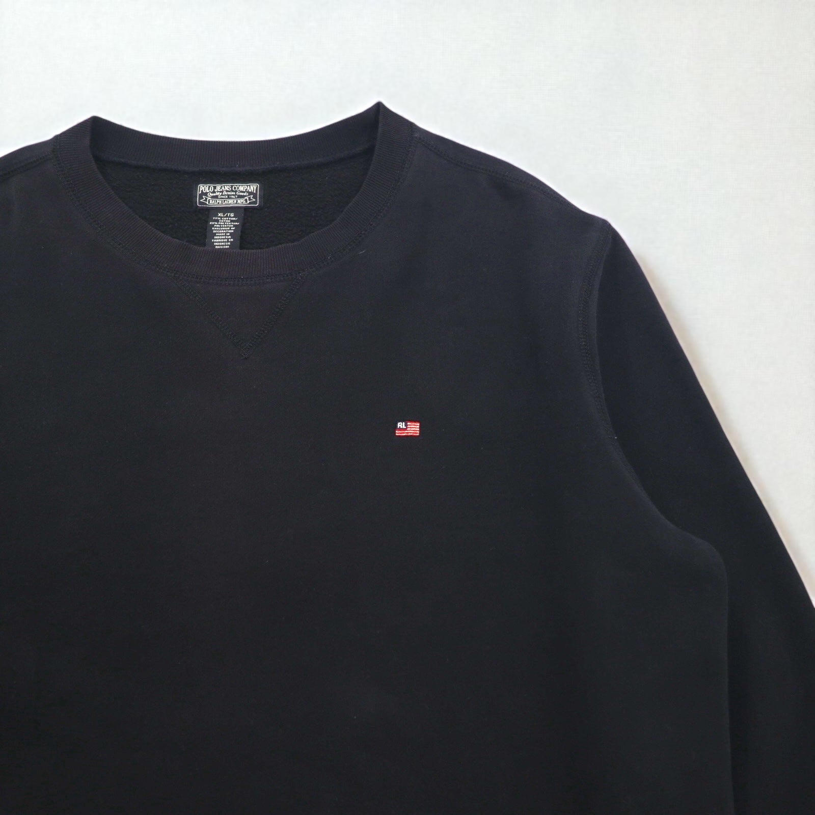 POLO JEANS COMPANY RALPH LAUREN 前V クルーネック スウェット XL ブラック 無地 ワンポイントロゴ刺繍