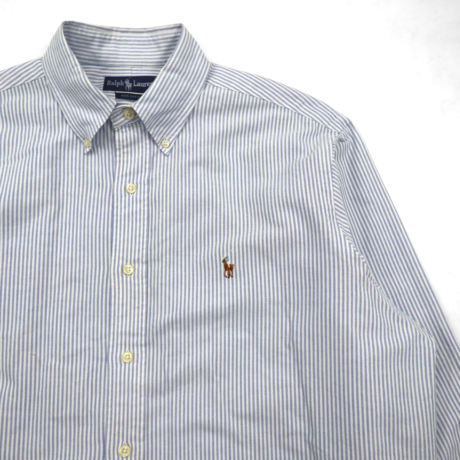 Ralph Lauren 90年代 オックスフォード ボタンダウンシャツ XL ブルー ホワイト ストライプ スモールポニー刺繍