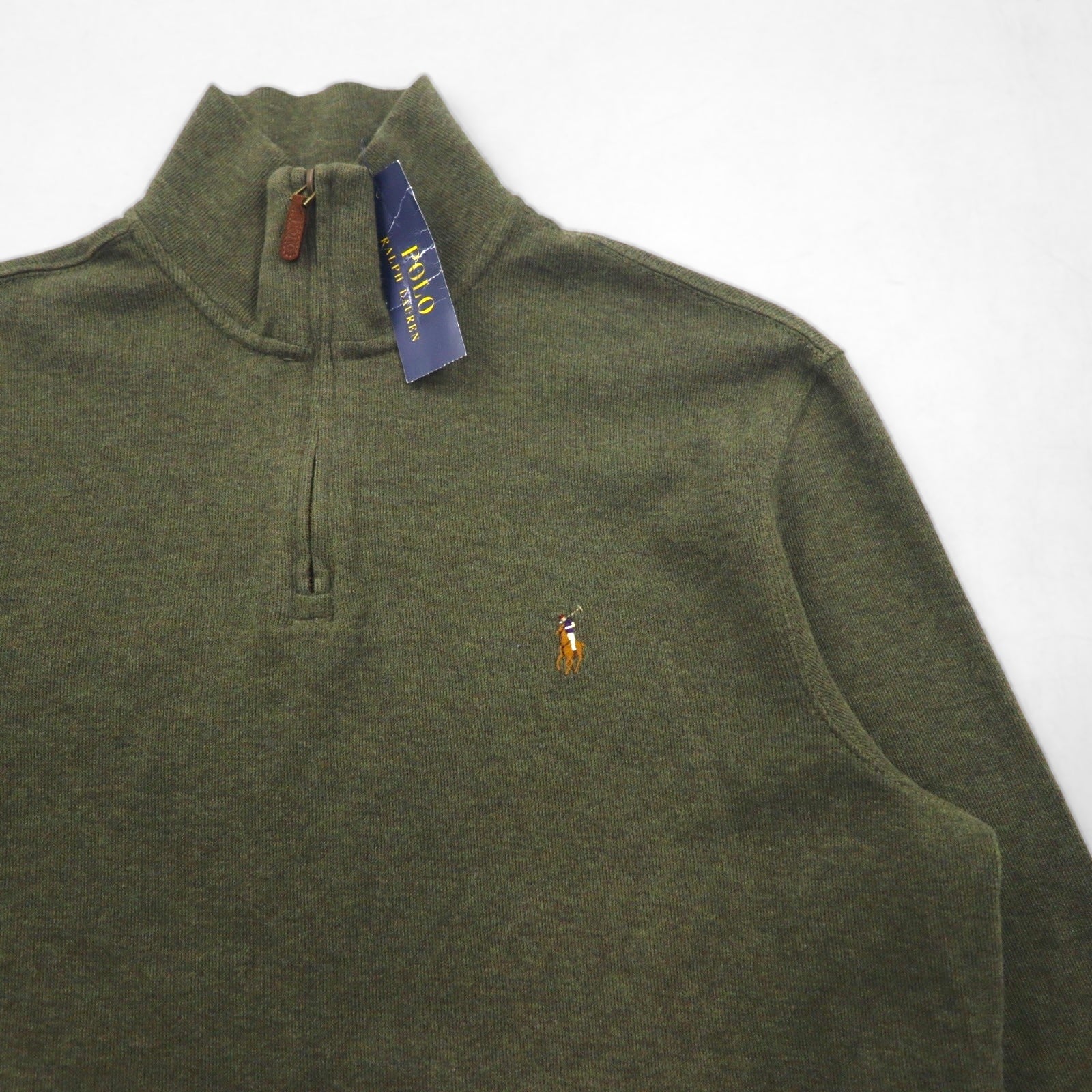 POLO RALPH LAUREN ハーフジップ スウェット ESTATE RIB トレーナー M カーキ スモールポニー 刺繍 未使用品