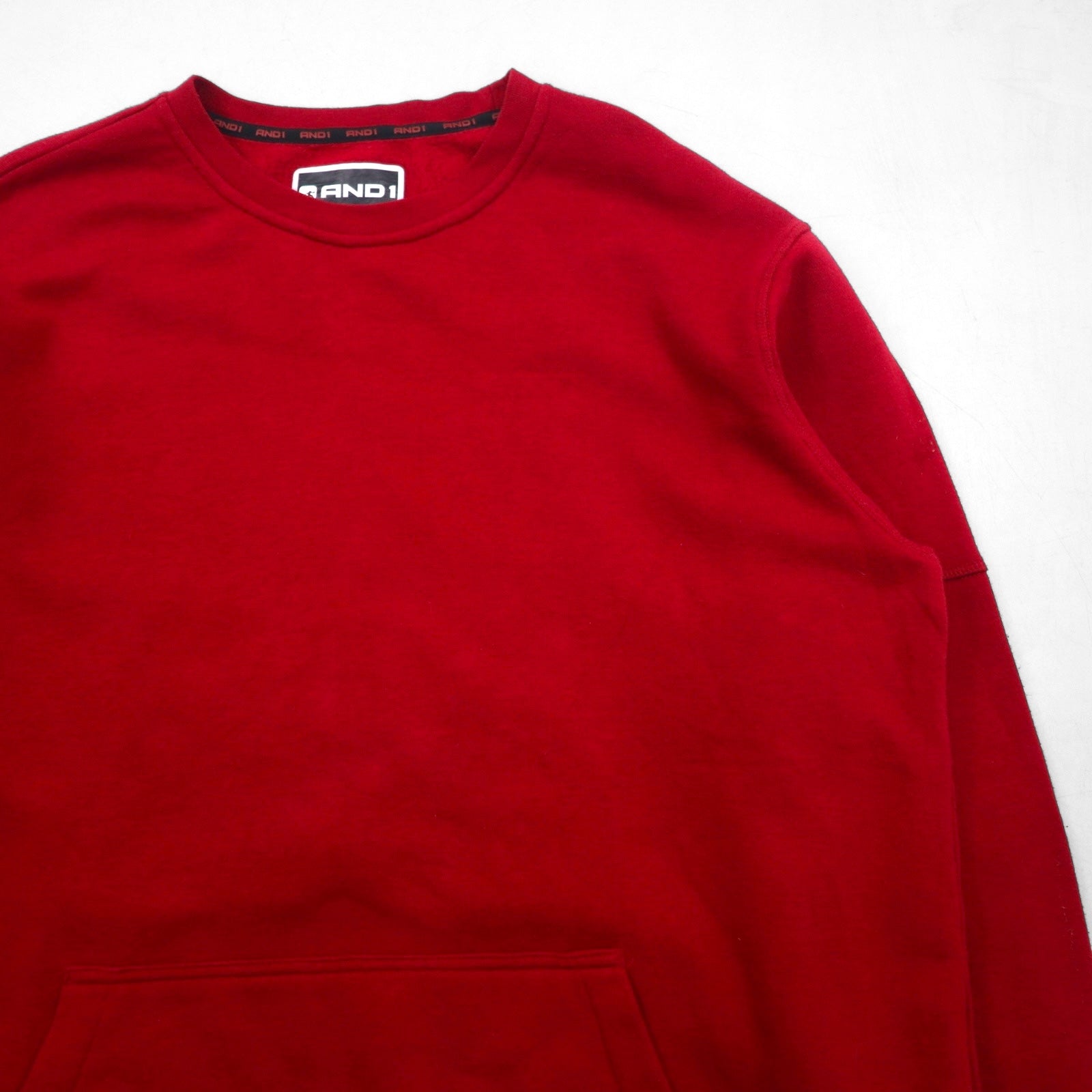 AND1 00年代 ブランク スウェットシャツ トレーナー XL レッド 無地 裏起毛 フロントポケット