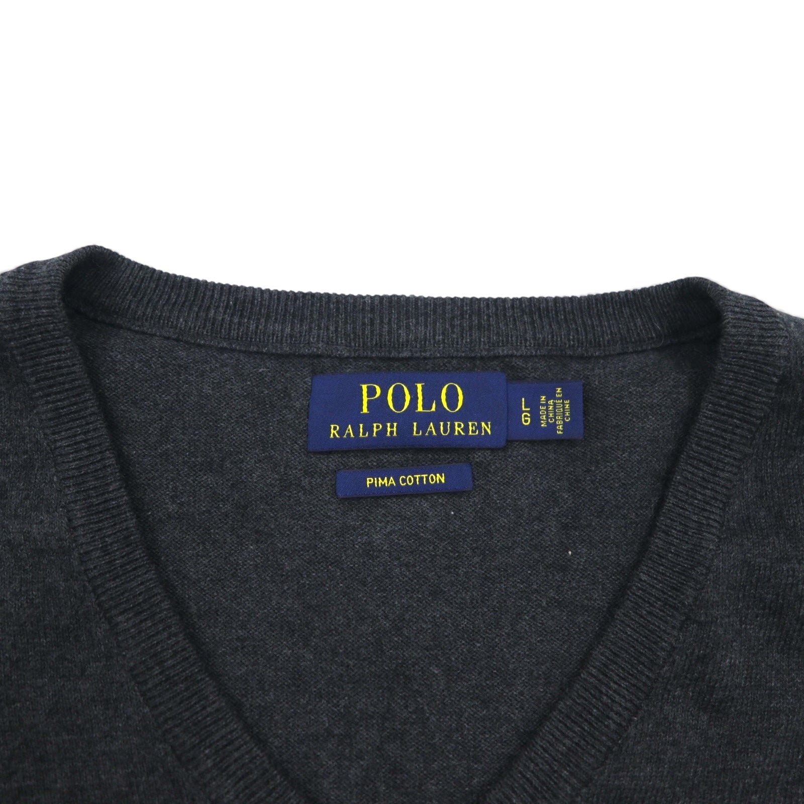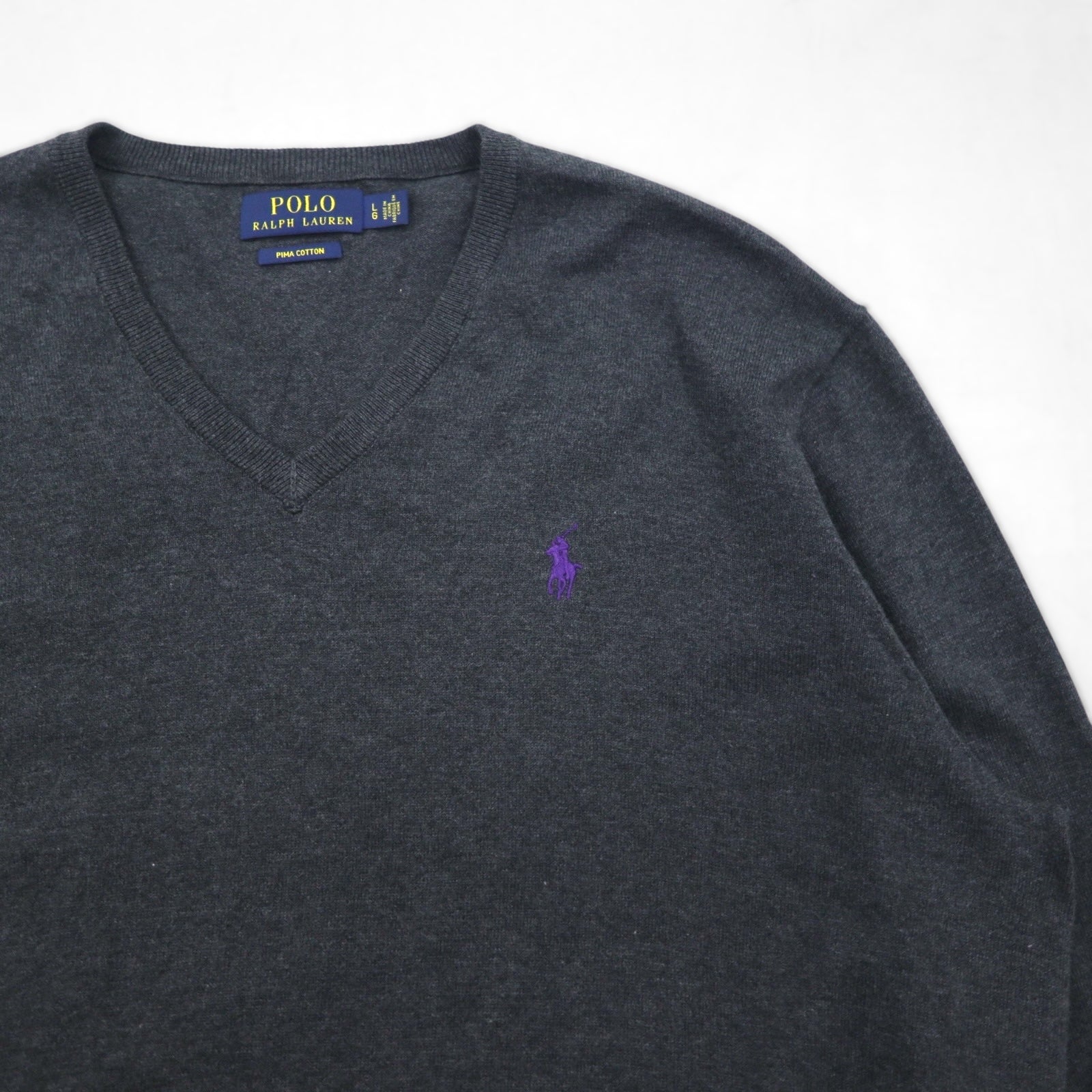 Polo Ralph Lauren Vネック ピマコットン ニット セーター L グレー スモールポニー刺繍