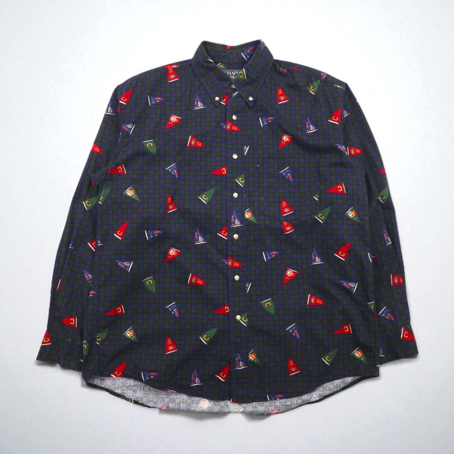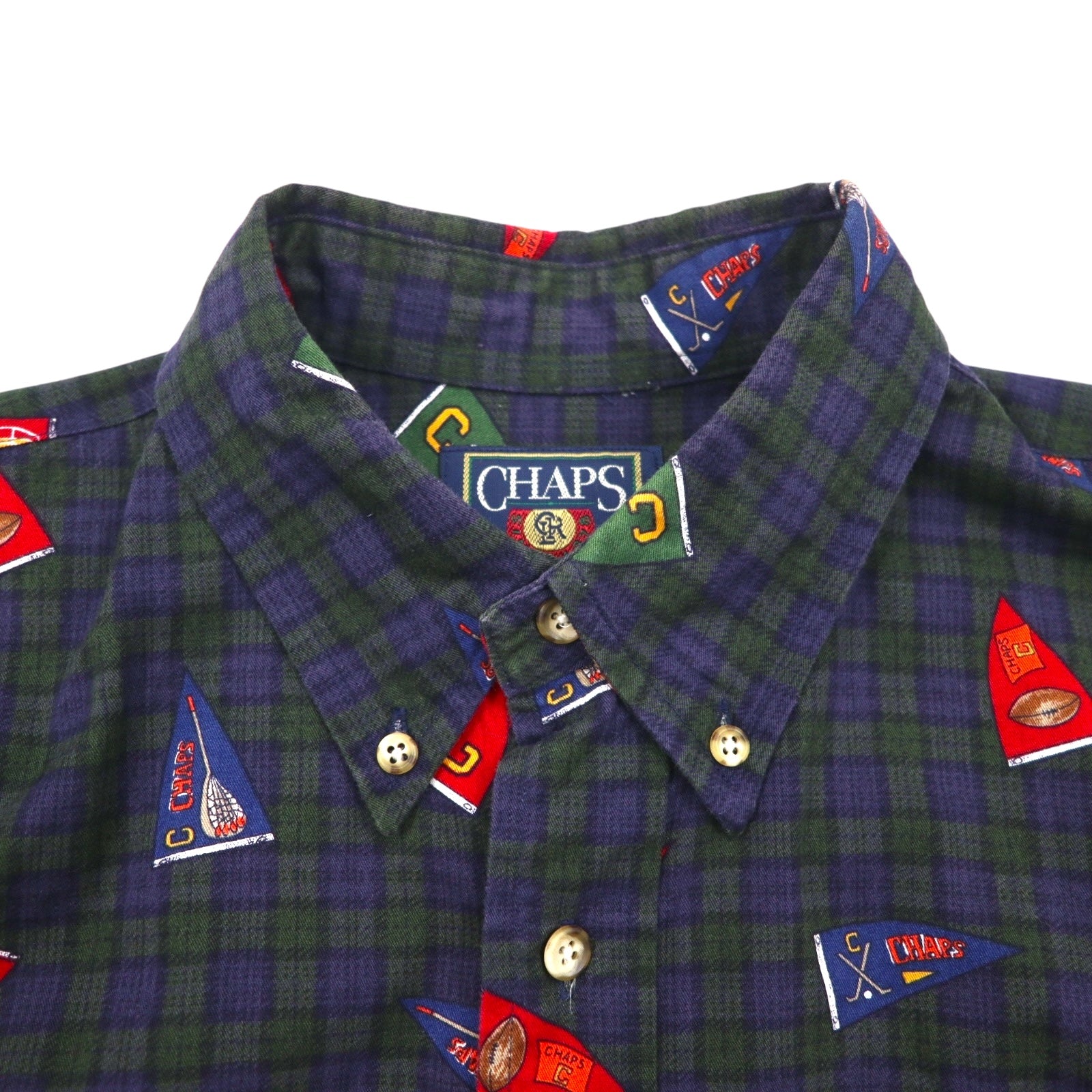 CHAPS RALPH LAUREN 90年代 ボタンダウンシャツ L グリーン チェック 総柄 ペナント フラッグ