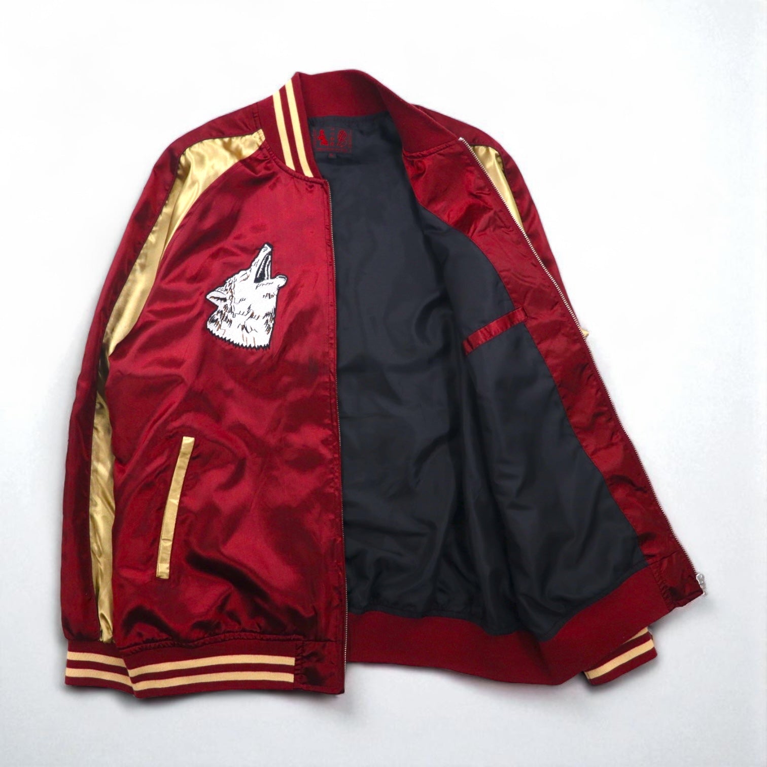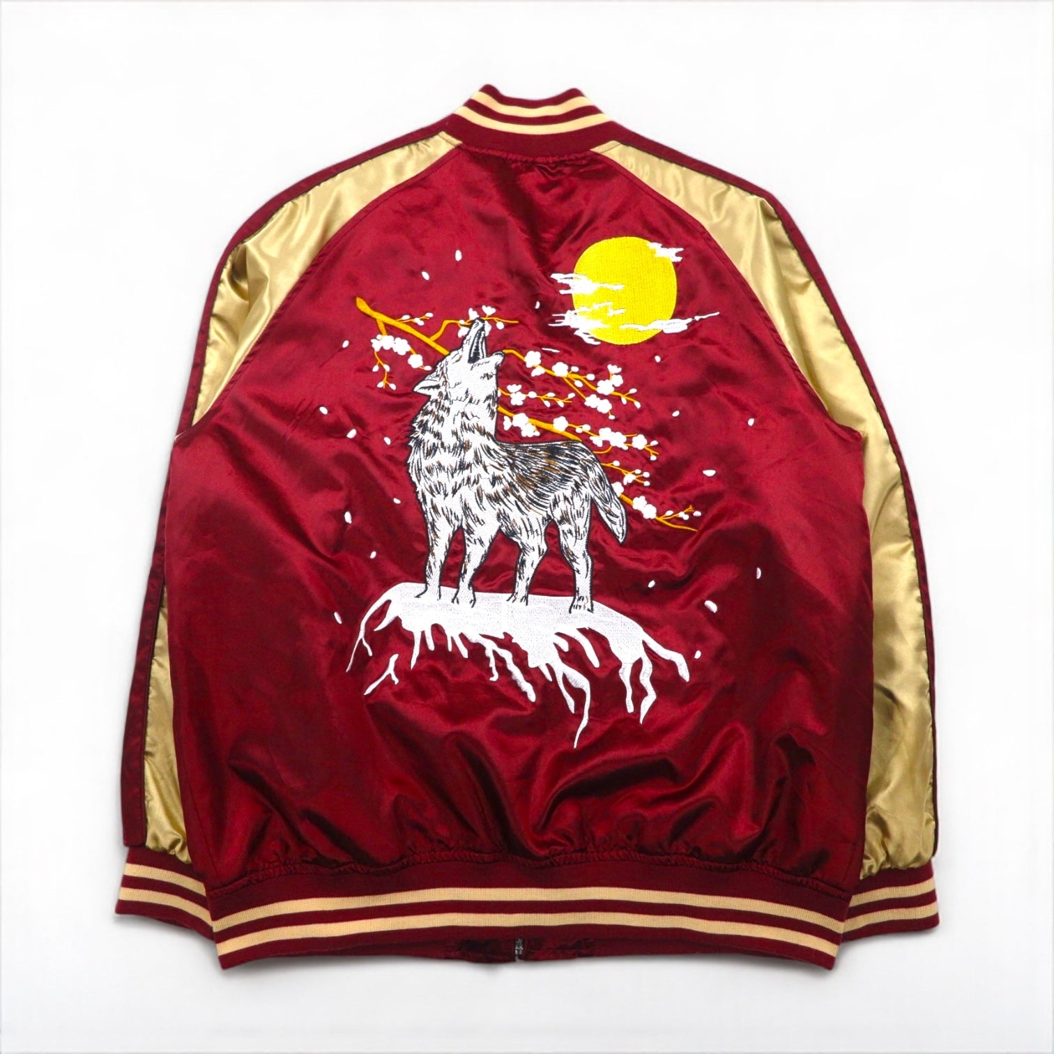一心如鏡 スカジャン スーベニアジャケット 3XL ボルドー 狼 オオカミ