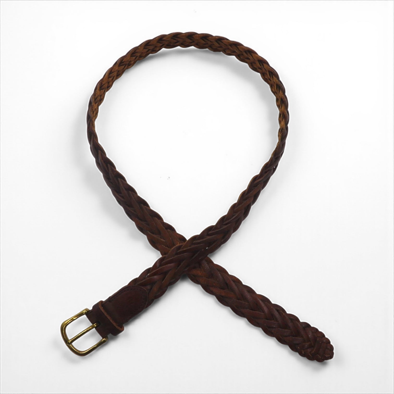 Polo Ralph Lauren 編み込み イントレチャート ベルト ブラウン ゴールド メッシュ レザー 405110774-213