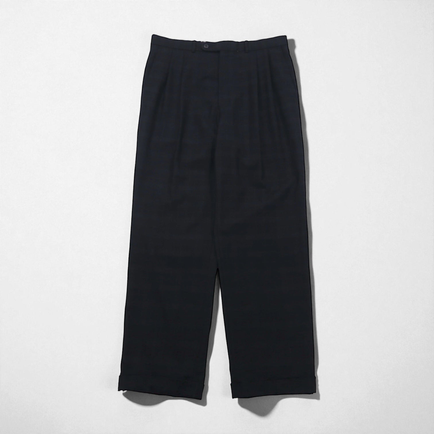 Vintage Pleats Wide Slacks 2タック ワイド スラックス パンツ L チェック カシミヤ混 プリーツ H.STOCKTONATLANTA カナダ製