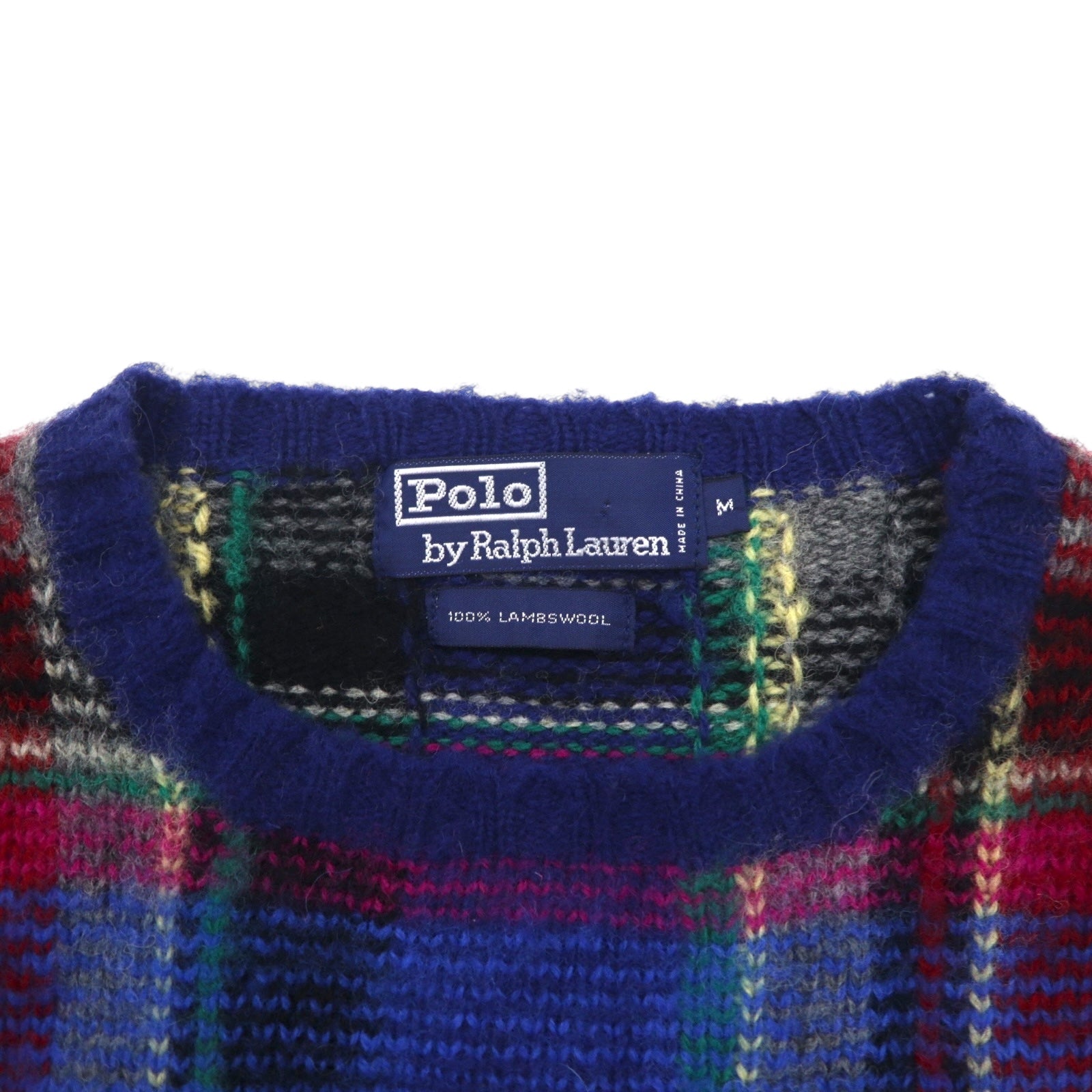 Polo Ralph Lauren 90年代 ラムウール ニット セーター M ブルー チェック 羊毛 未使用品