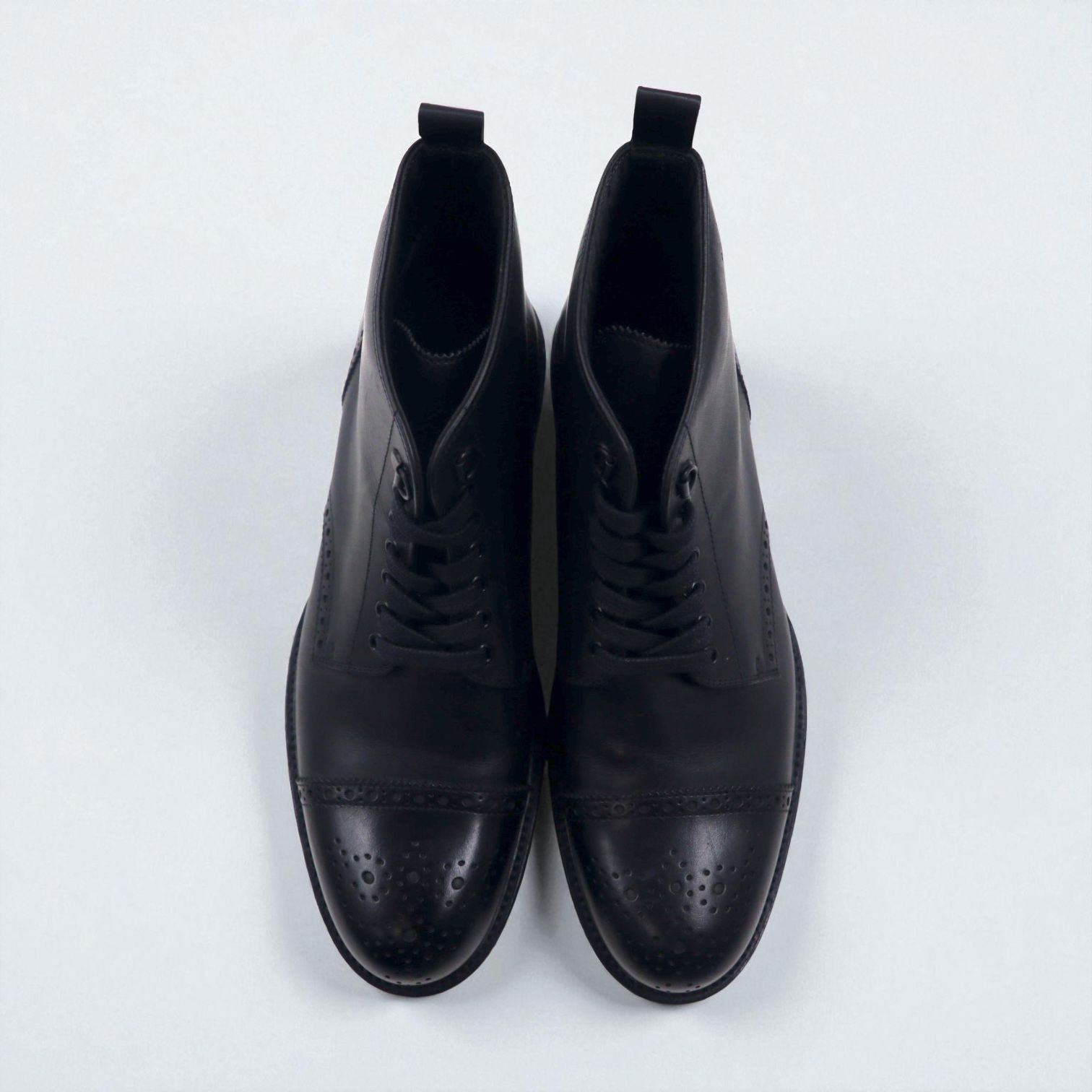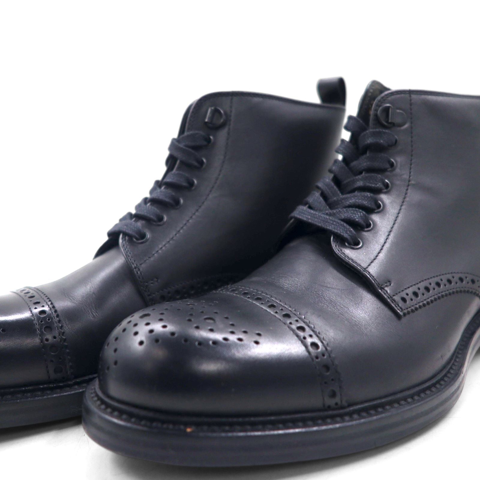 HUGO BOSS ブローグ キャップトゥ ショートブーツ 27cm レザー ラグソール メダリオン 50228355 イタリア製