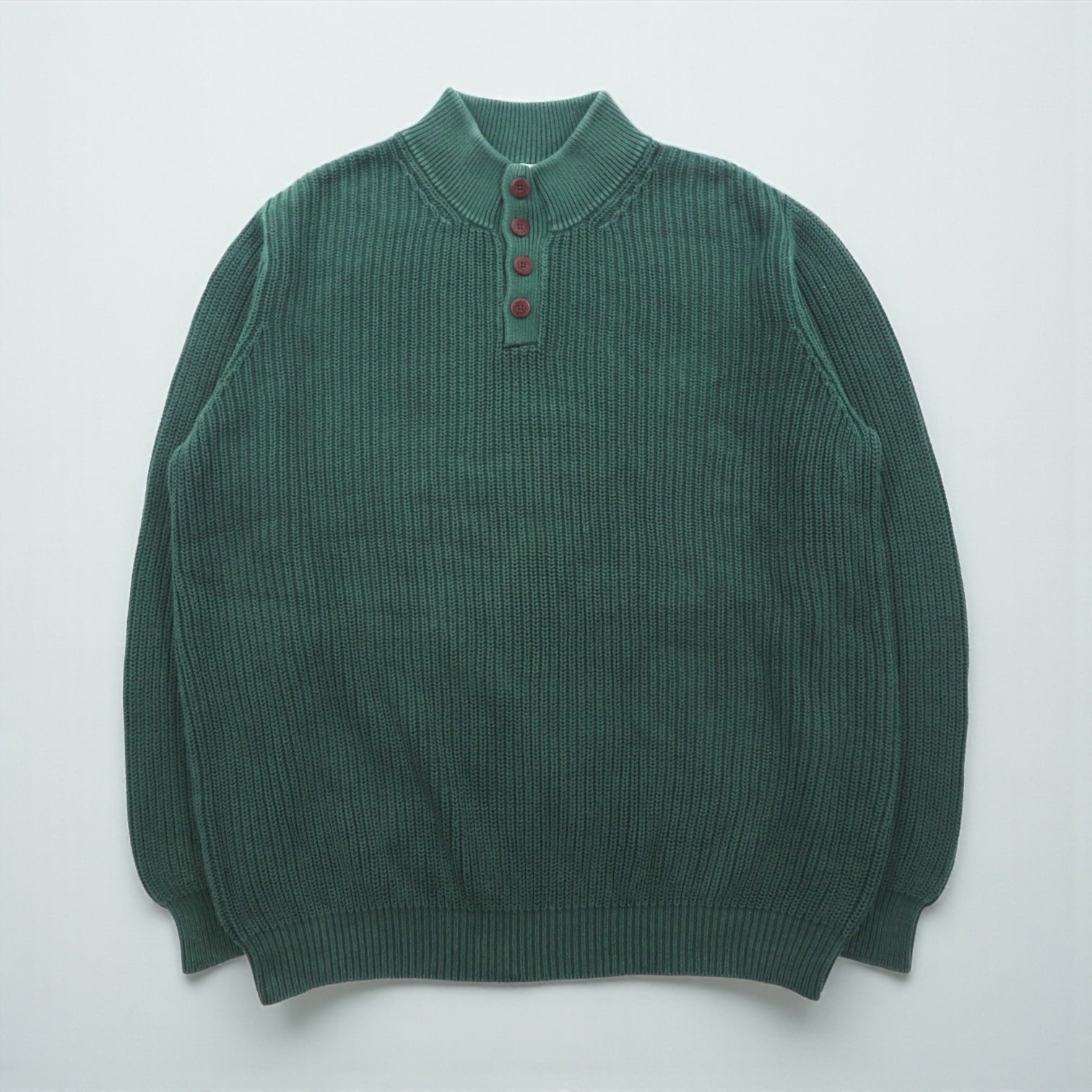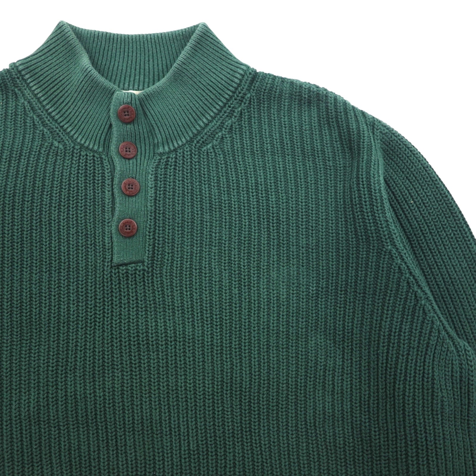 L.L.Bean ハーフボタン コットンニット セーター 2XL グリーン リブニット FKQ7