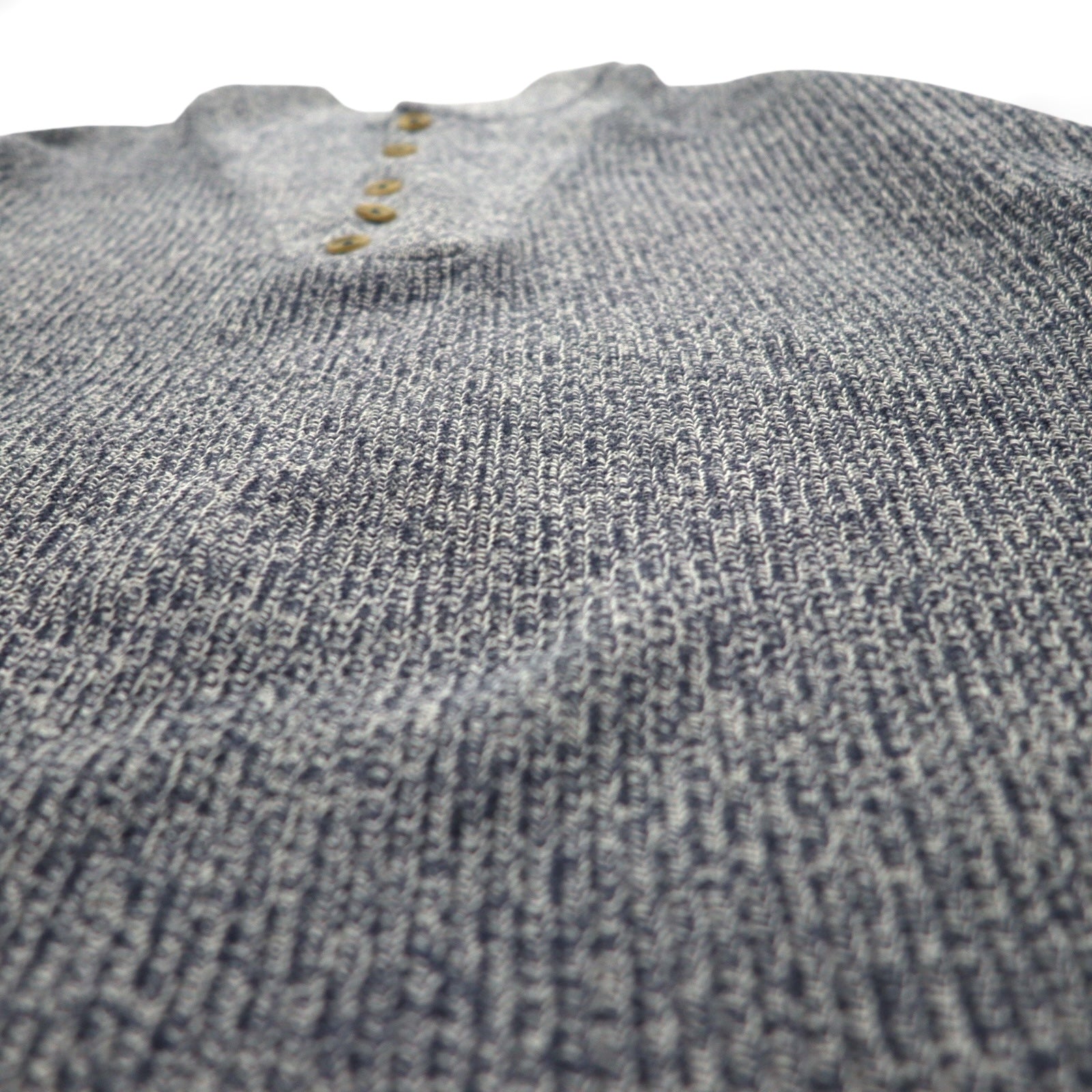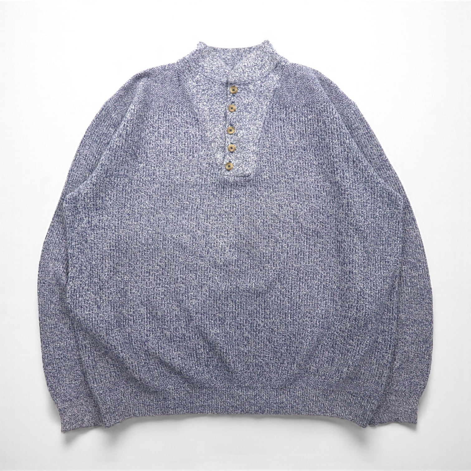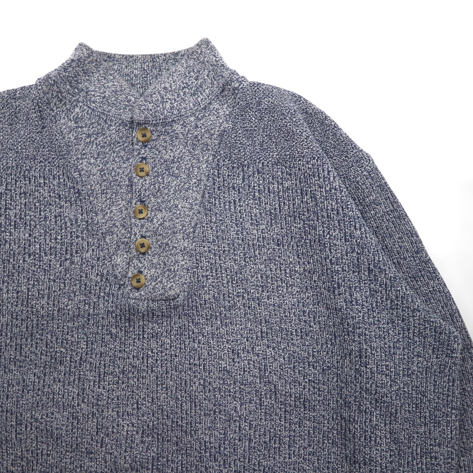 L.L.Bean 80年代 USA製 ハーフボタン リブニット セーター XL ブルー モックネック スタンドカラー