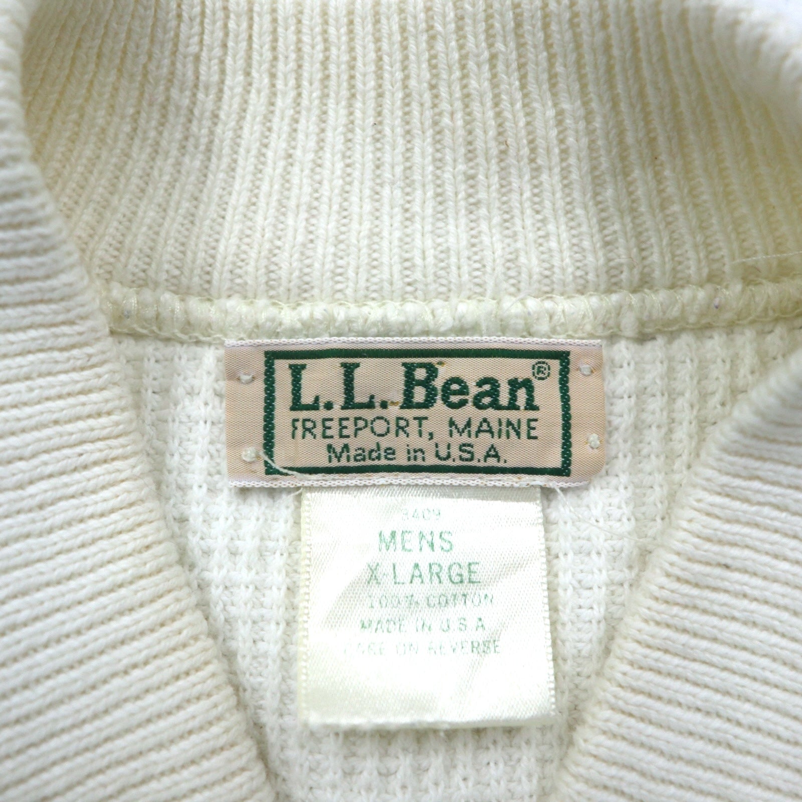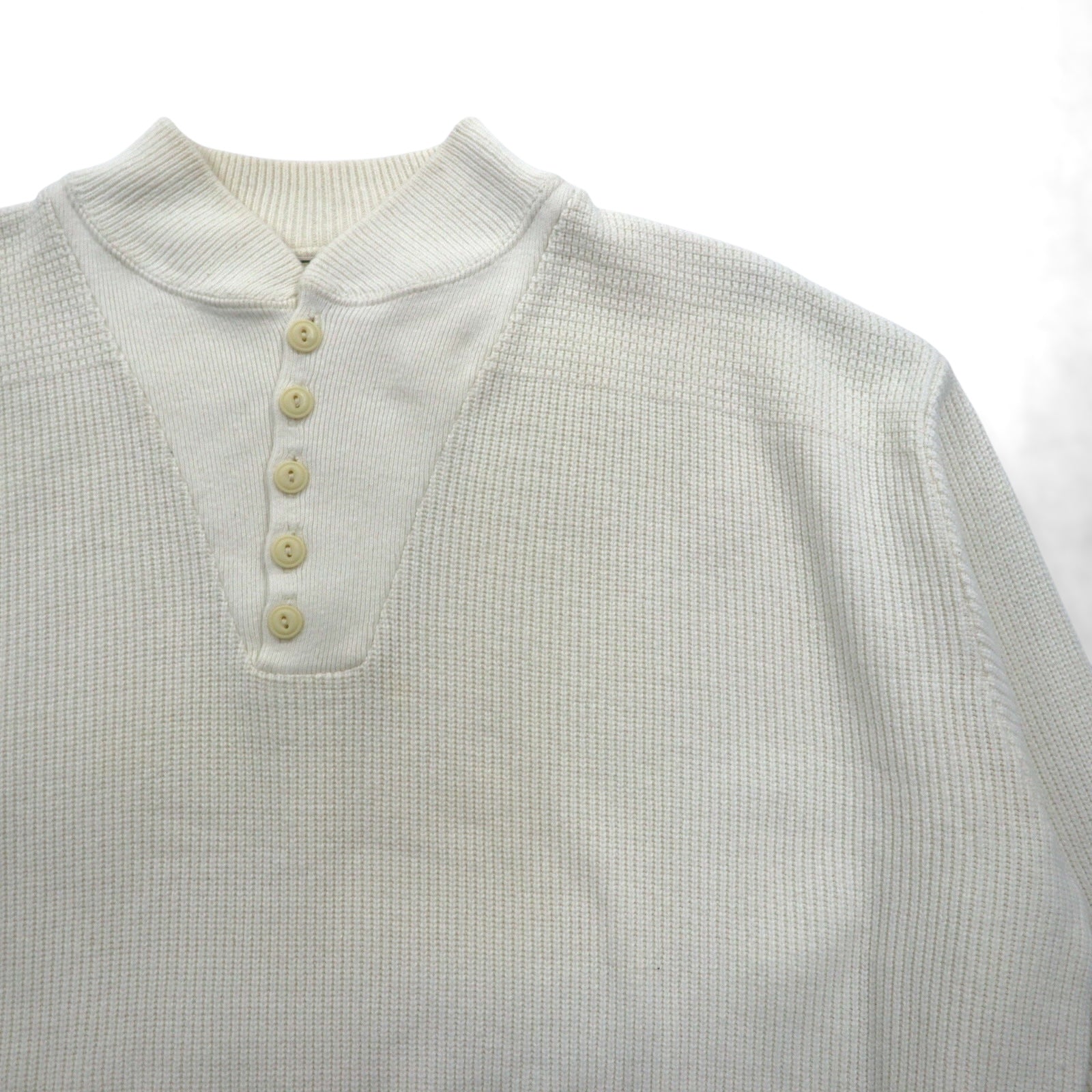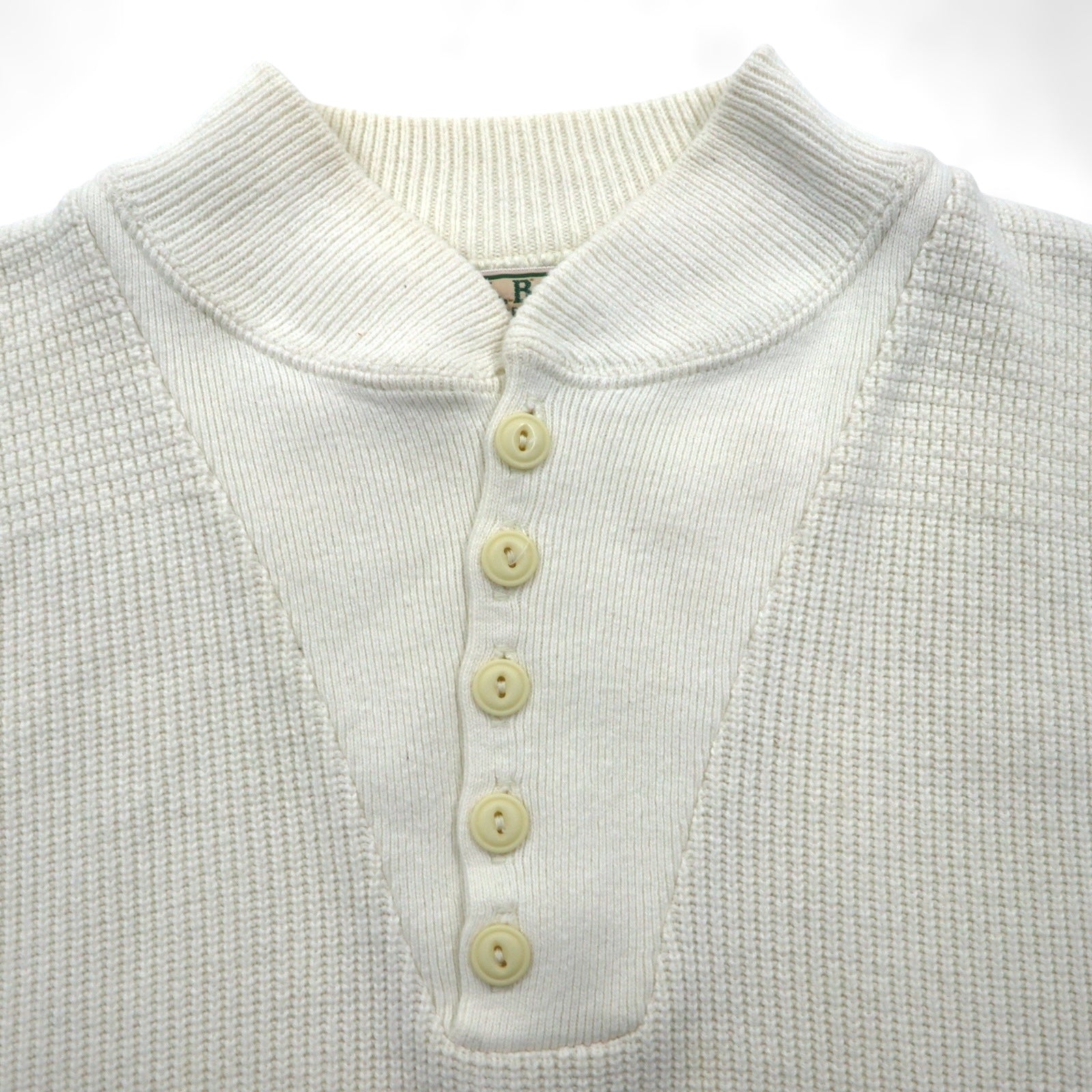 L.L.Bean 80年代 USA製 ヘンリーネック リブニット セーター XL ホワイト コットン ハーフボタン