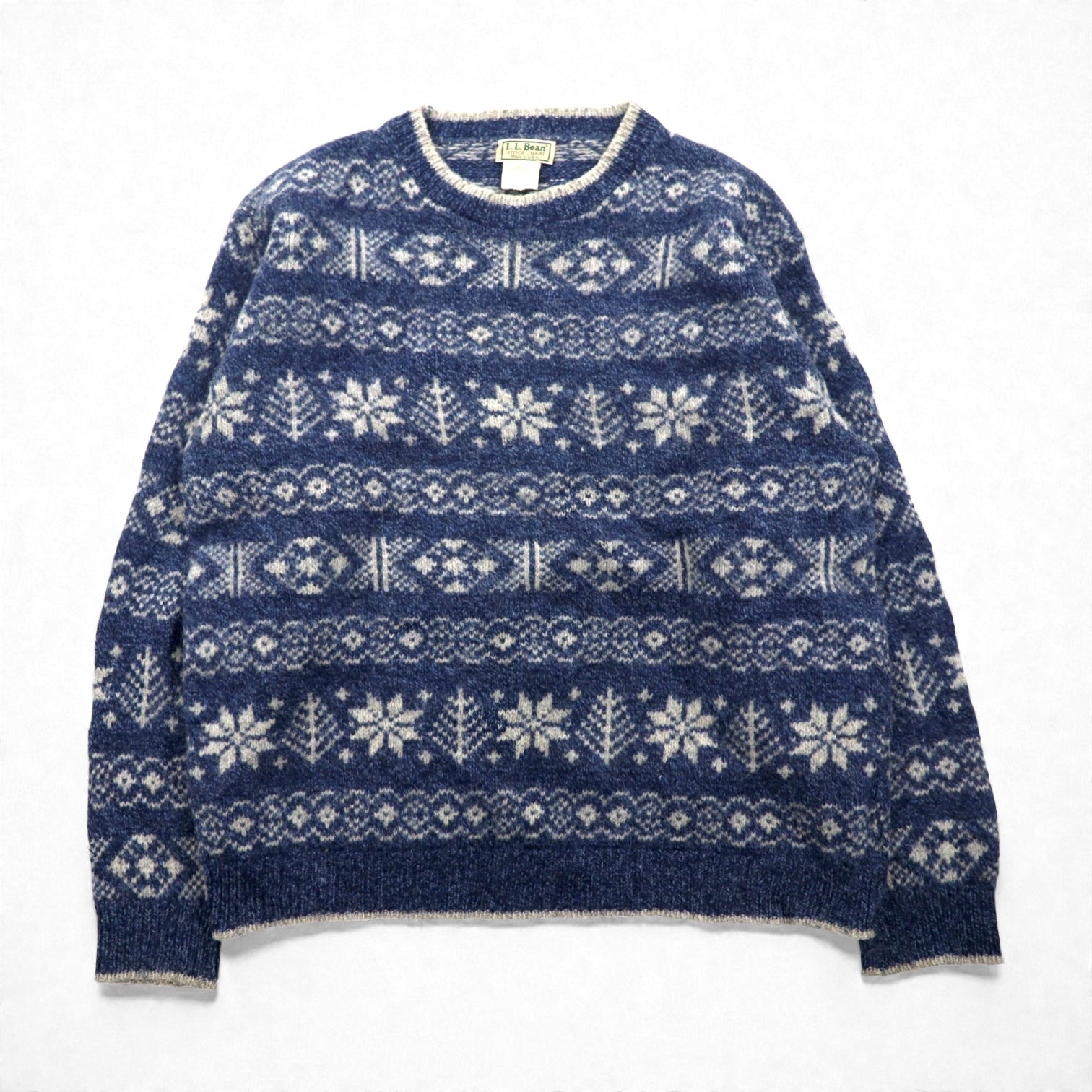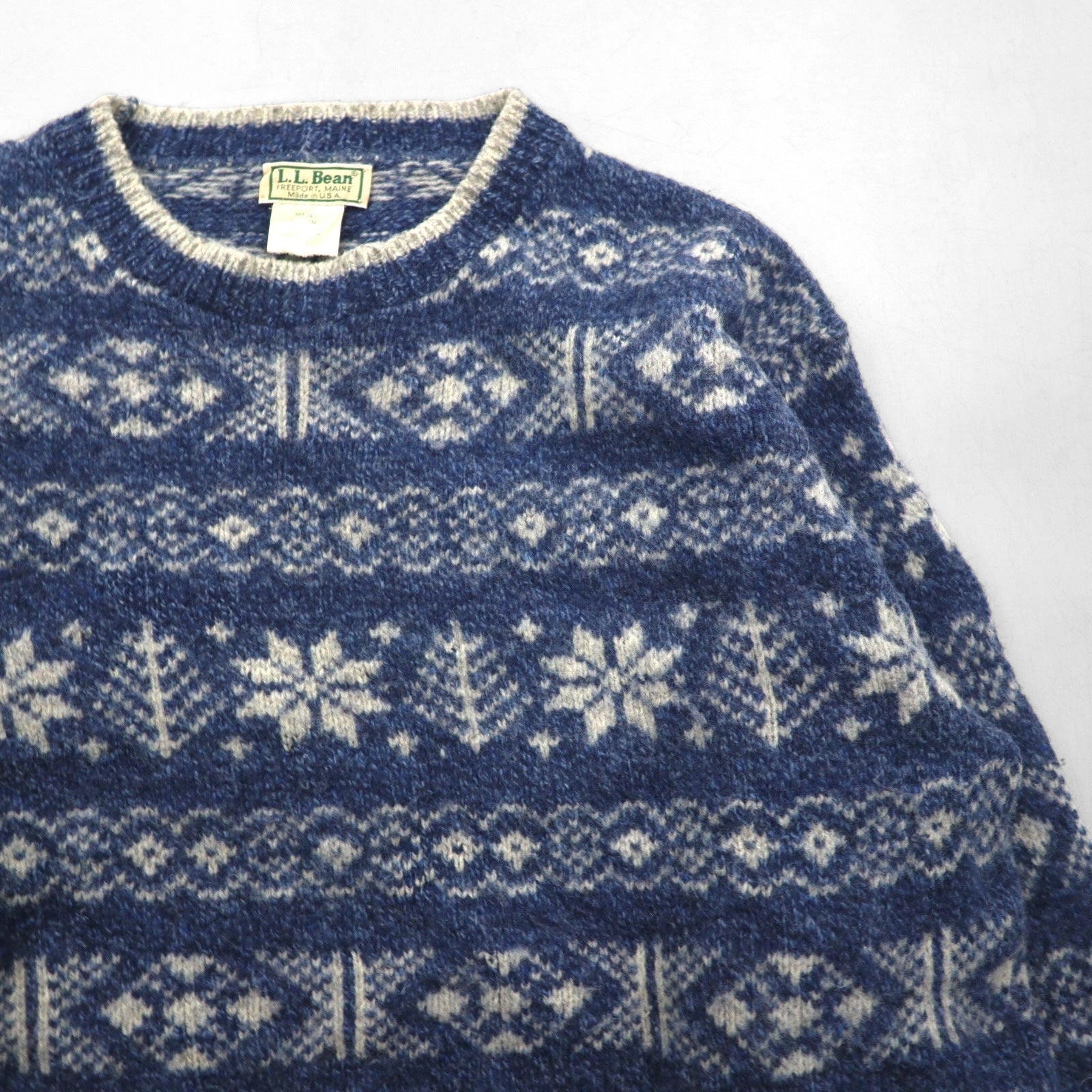 L.L.Bean 80年代 USA製 ノルディック ニット セーター XL ブルー 総柄 ウール