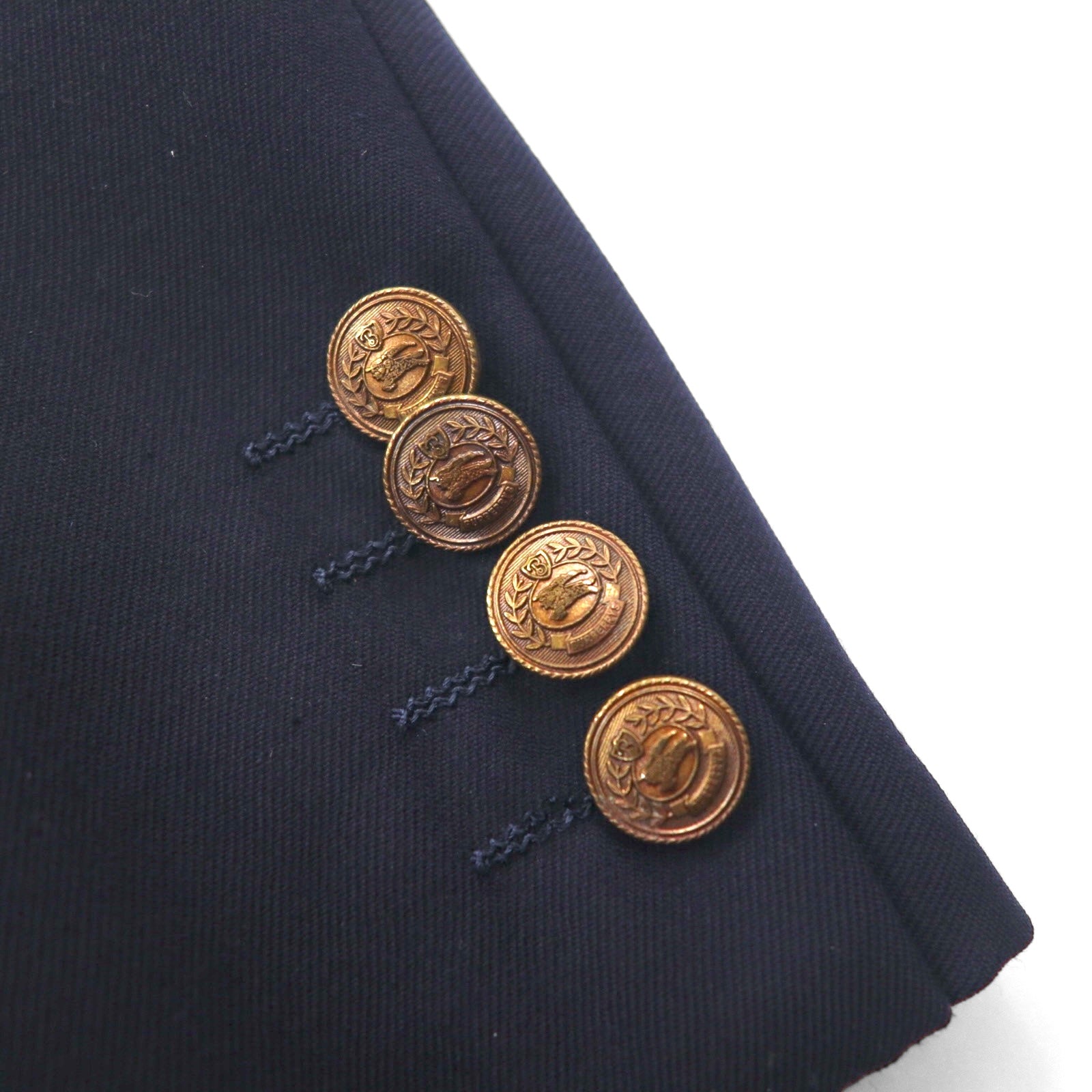 BURBERRY 80年代 日本製 ピークドラペル ダブルブレスト セットアップ スーツ S ネイビー ウール TASMANIA WOOL 紺ブレ 金ボタン ギャバジン