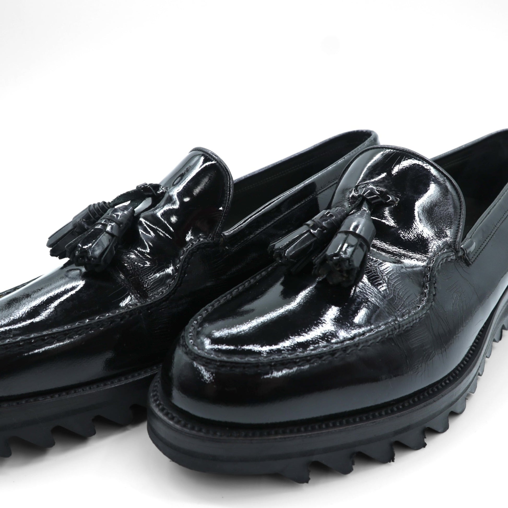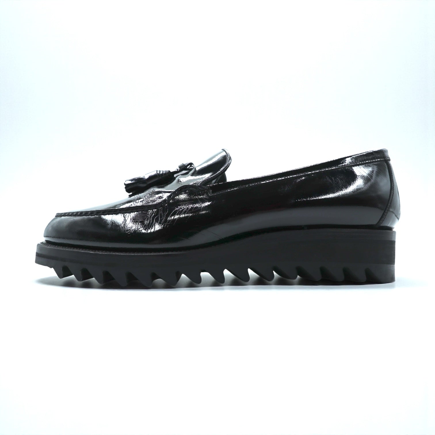 F.LLI.Giacometti タッセル エナメル ローファー スリッポン シャークソール 28cm ブラック パテントレザー vibramソール PIETROSTRADA イタリア製