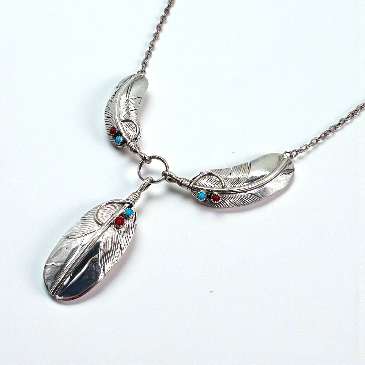 CHARLEY Vintage Navajo Necklace ナバホ族 フェザー ネックレス シルバー STERLING ホールマーク 刻印 インディアンジュエリー