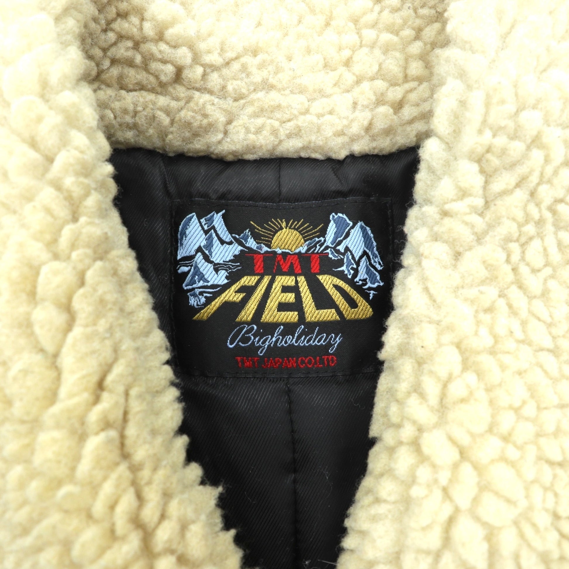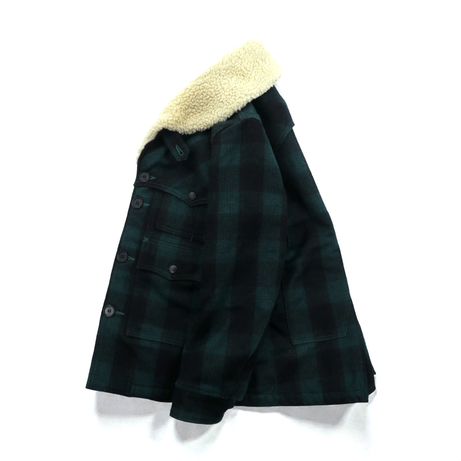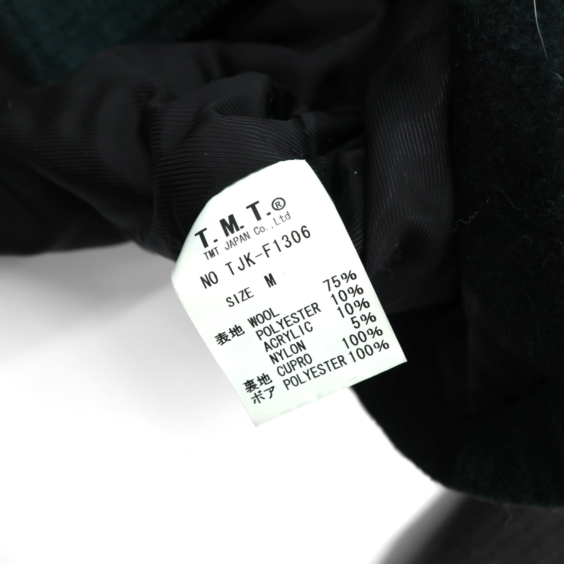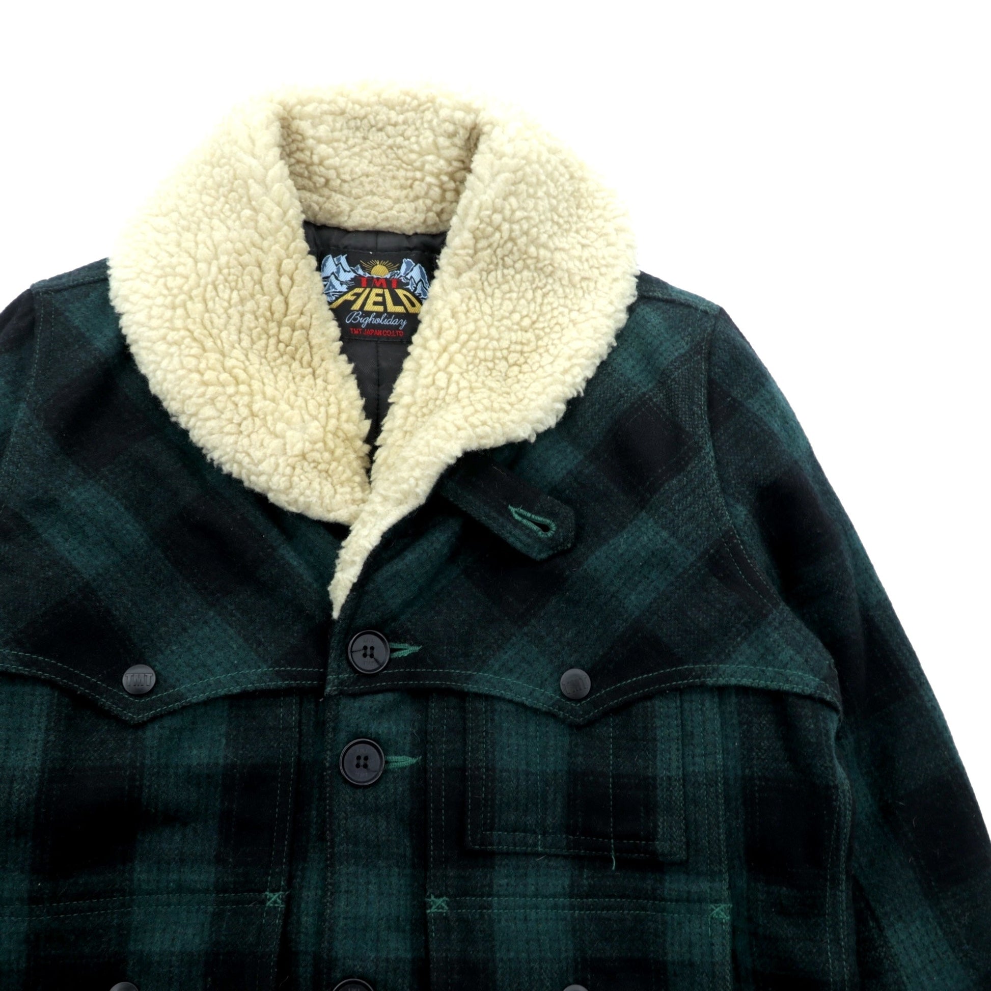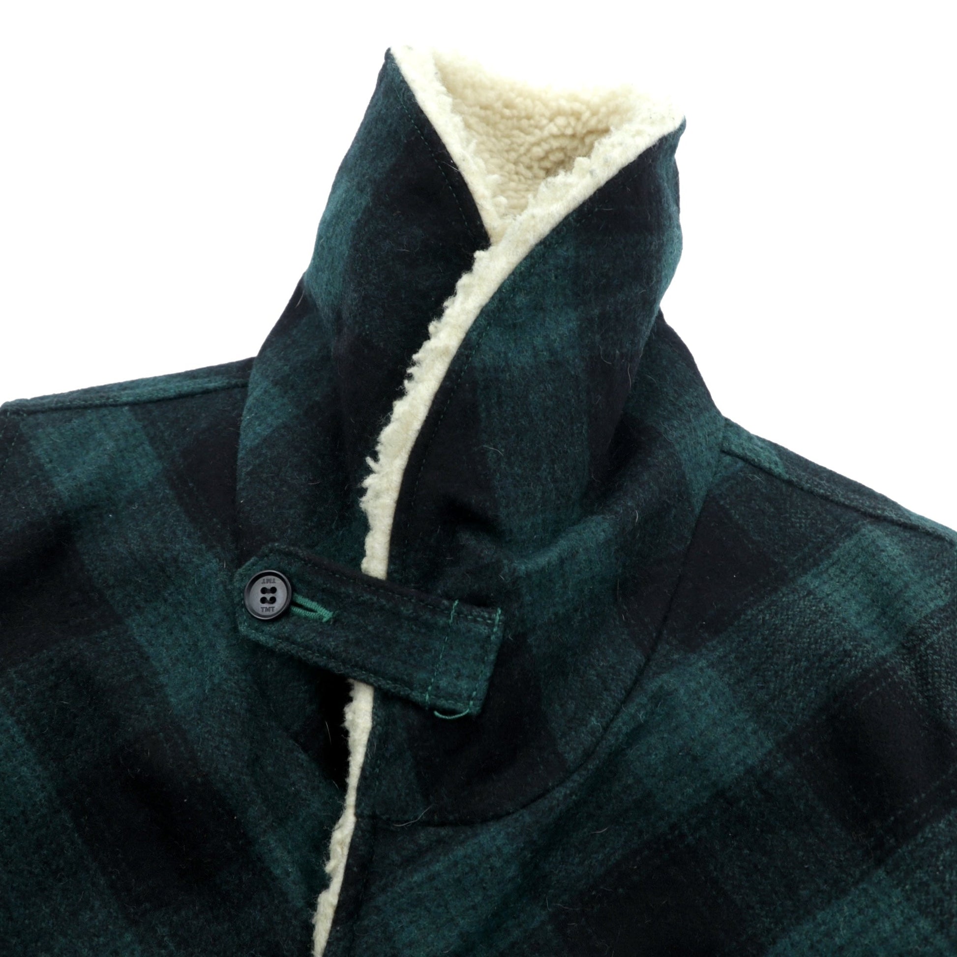 TMT FIELDS ボア襟 ランチコート ギャングコート M グリーン ウール チェック チンストラップ 日本製 TJK-F1306