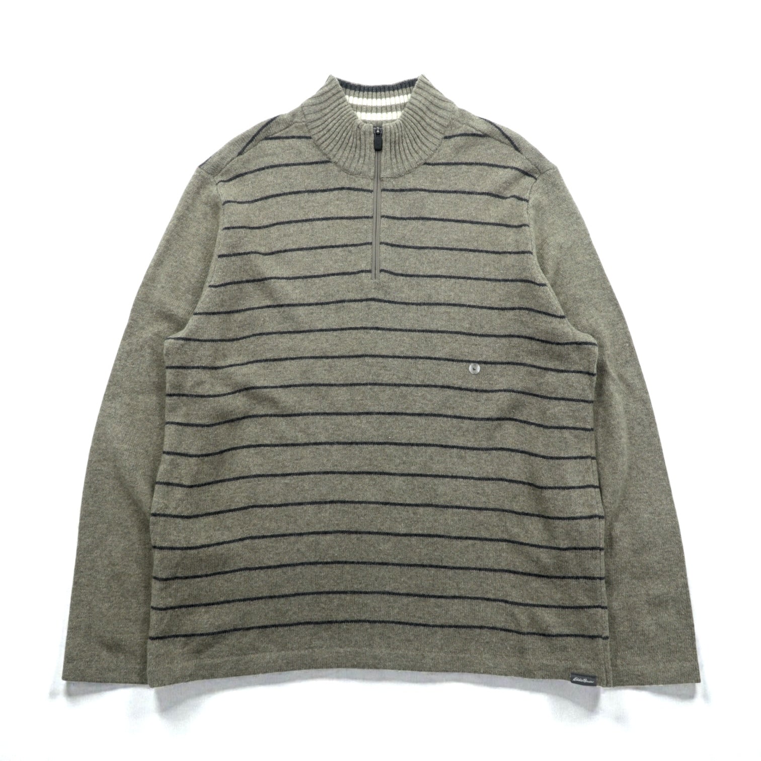 Eddie Bauer ハーフジップ ニット セーター L ブラウン ウール ボーダー 6007 未使用品
